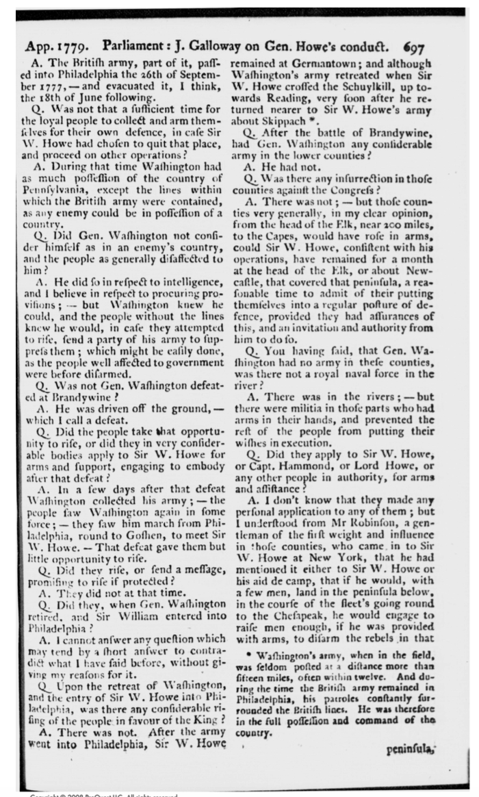 Includes the Testimonials of Joseph Galloway, and the comments of General Howe and Germain